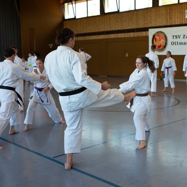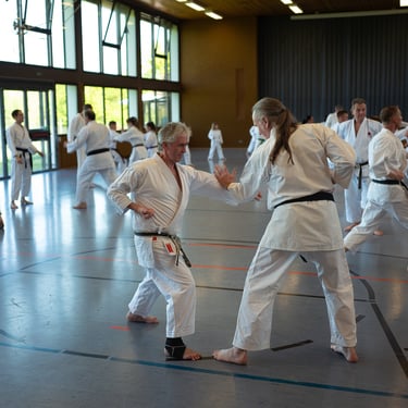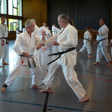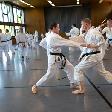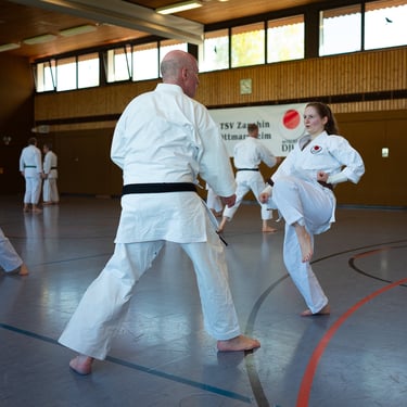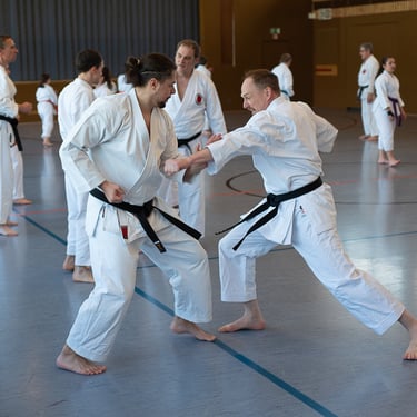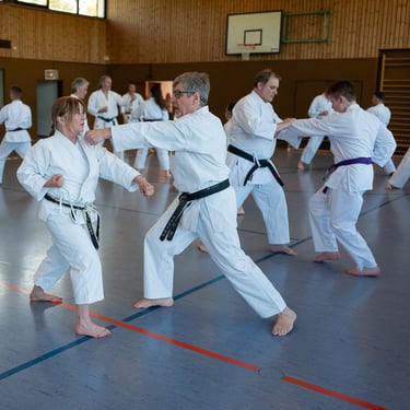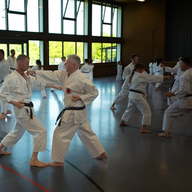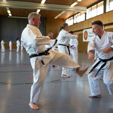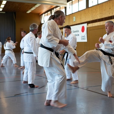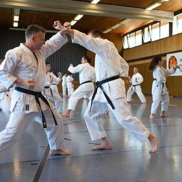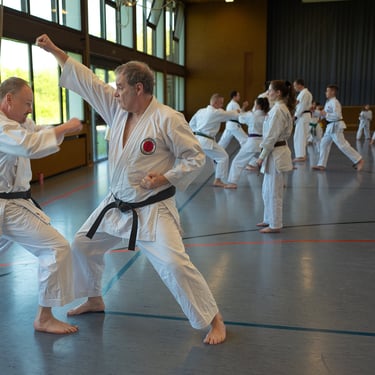 Der Tag startete so, wie es sich für einen Karateverein gehört, nämlich sportlich. In zwei intensiven Trainingseinheiten brachten die erfahrenen Trainer Jürgen "Jogi" Breitinger, Andreas Stephan und Armin Lechler die Teilnehmer ordentlich ins Schwitzen. Es war beeindruckend zu sehen, wie Karateka jeder Alters- und Leistungsstufe gemeinsam auf der Matte standen. Dabei ging es nicht nur um die richtige Technik, sondern vor allem um den Budogeist – das voneinander Lernen und den gegenseitigen Respekt. Besonders schön war, dass wir dabei auch Gäste von befreundeten Vereinen wie dem TV Bushido Tamm, dem JC Bietigheim und der TSG Stuttgart begrüßen durften, was die enge Verbundenheit in der Region unterstrich.