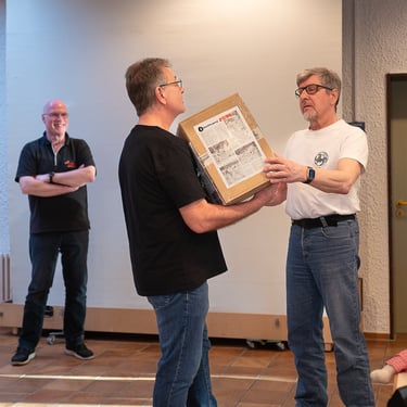 Nach dem Sport wurde es dann emotional. In der Halle luden liebevoll gestaltete Bildergalerien dazu ein, in Erinnerungen zu schwelgen. Von den ersten Trainingseinheiten in kleiner Runde bis hin zur Entwicklung als feste Größe im regionalen Karatesport wurde die Geschichte des Vereins wieder lebendig. Man spürte förmlich den Stolz der Eltern und Zuschauer, während die Aktiven zeigten, wie viel Disziplin und Freude im Karate stecken. In vielen Gesprächen tauschten langjährige Mitglieder persönliche Anekdoten aus und erzählten von den Anfängen, von kleinen und großen Herausforderungen und von den vielen Freundschaften, die über die Jahrzehnte weit über das Training hinaus gewachsen sind.