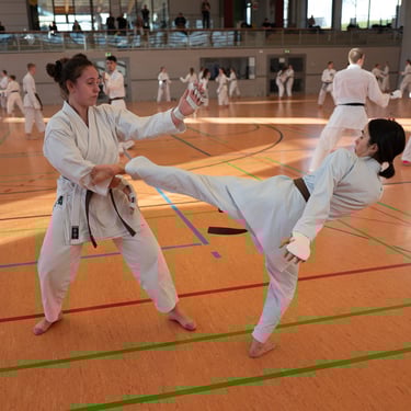 Der Bereich Kumite befasste sich mit taktischem Verhalten sowie dem effektiven Einsatz technischer Kombinationen im freien Kampf.